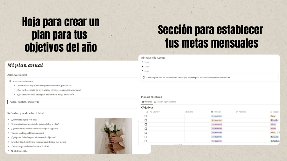 - Plan anual: visualiza, organiza y alcanza tus objetivos a lo largo del año.