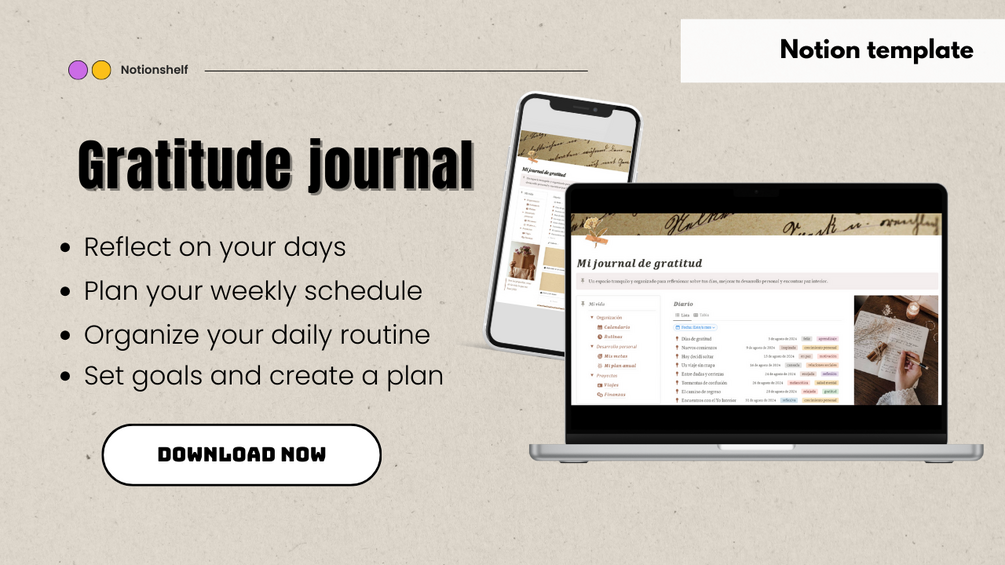 Diario de Gratitud de Notion | Journal + Agenda Semanal + Rutina